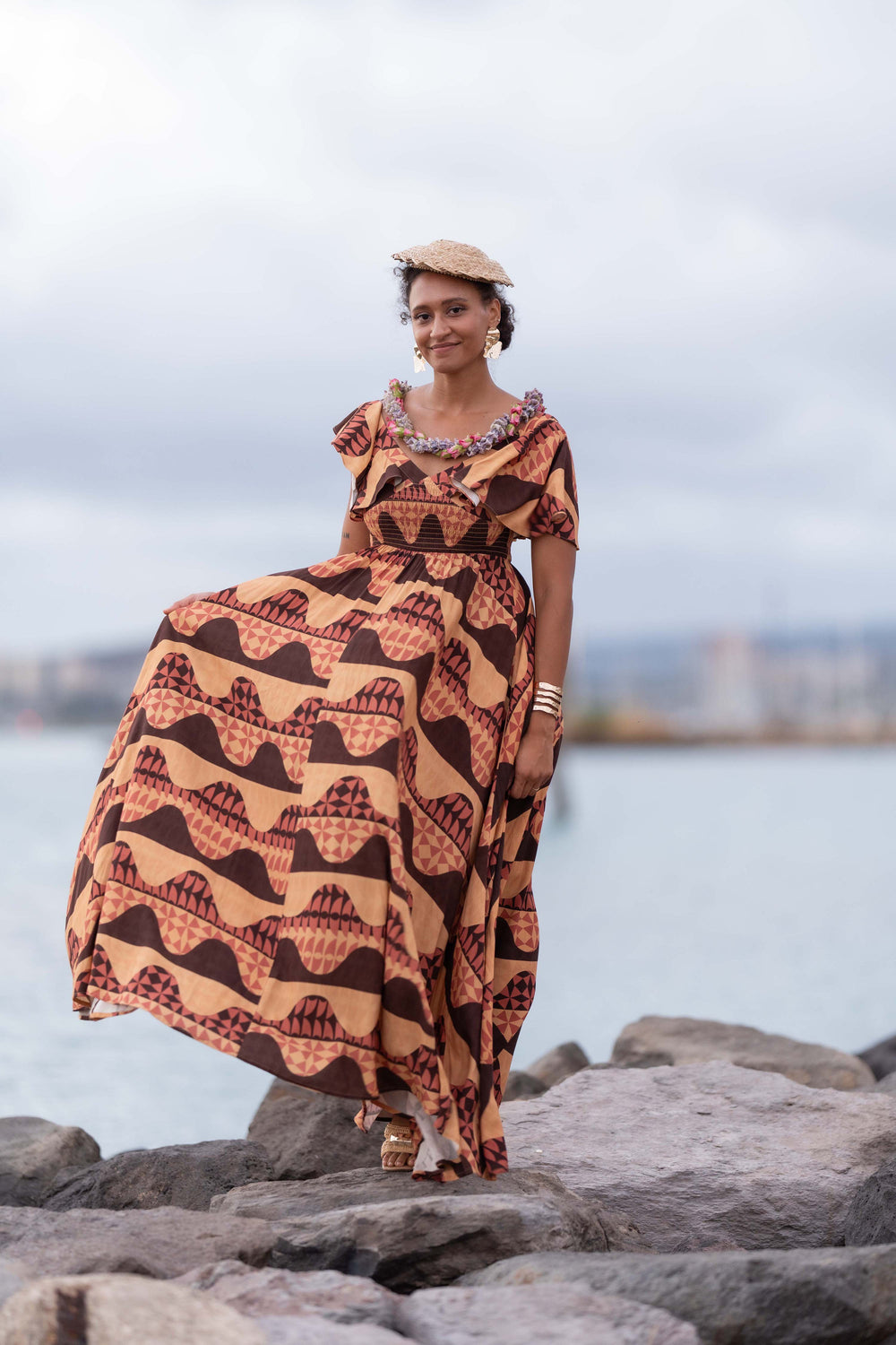 The Kiliʻohu Dress was designed after its jumpsuit counterpart, now featuring a full circle skirt at maxi length. Kiliʻohu offers gorgeous cascading sleeves and a chic, low back neckline. Complete with a smocked bodice and a back zipper, you will look and feel your best in this ravishing number!
