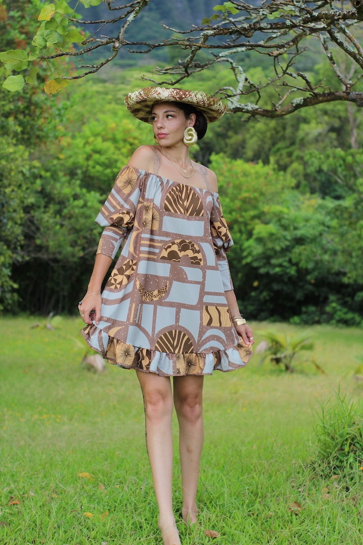The Hawaiʻiloa Mini Muʻu is the perfect blend of classic and contemporary Hawaiʻi with its puff sleeves and off-the-shoulder neckline. Whimsical yet elegant, this fun-loving number offers a comfortable A-line silhouette and a flirty ruffle hem.
