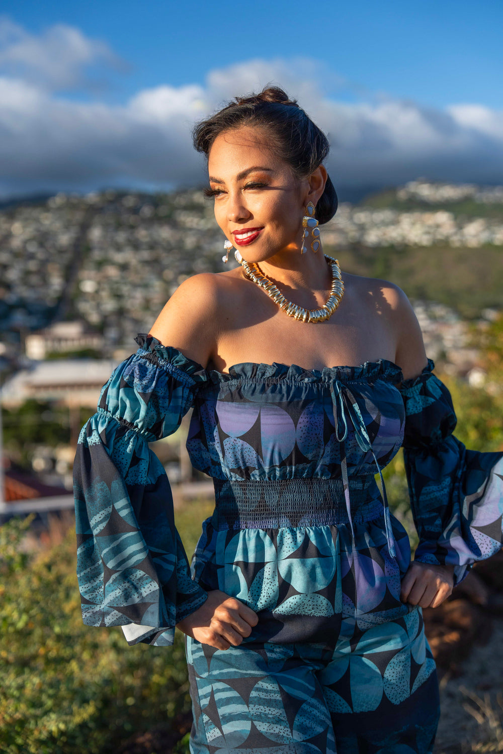 The Kilolani Jumpsuit is your go-to for laid-back elegance. Designed with elastic at the chest and sleeves, she offers a flattering and comfy fit. The smocked waistline will give you a defined silhouette, and the invisible side zipper will allow for ease in getting in and out. And yes, she's got pockets!